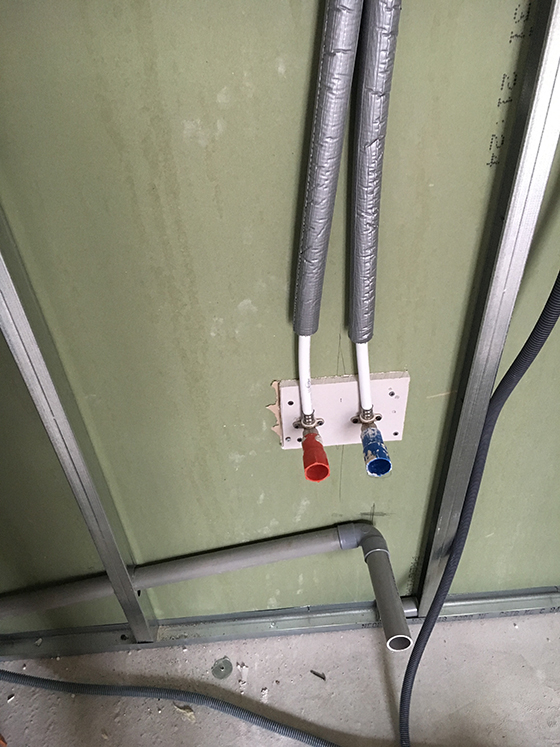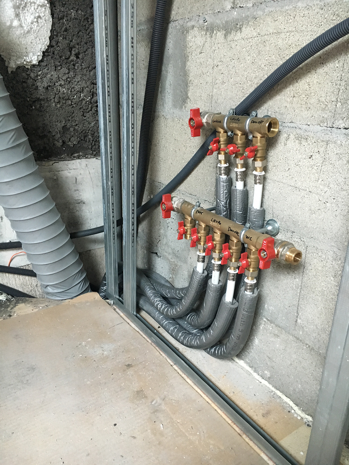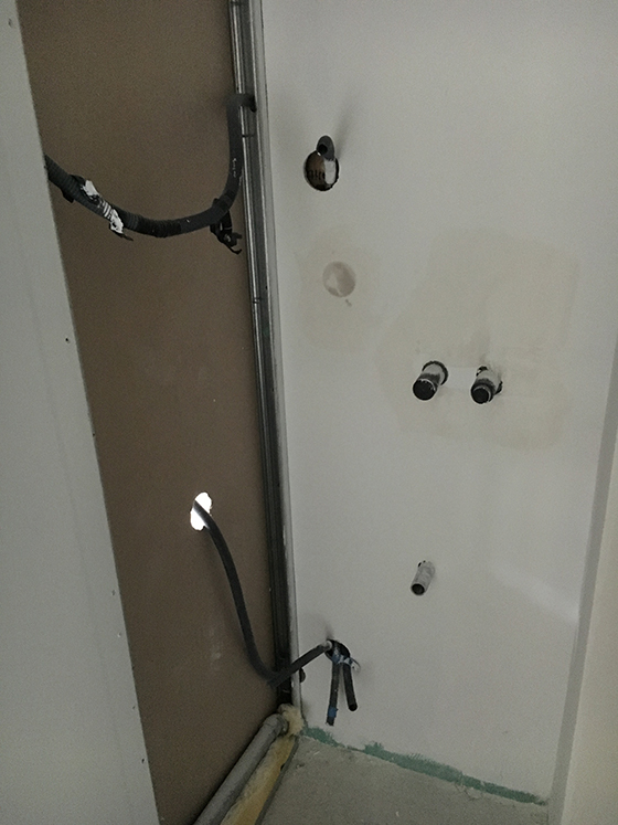 Mise en place de la robinetterie encastrée de la salle de bain (Lavabo + Douche) et cuisine.