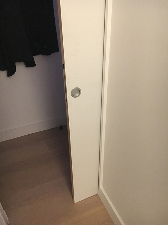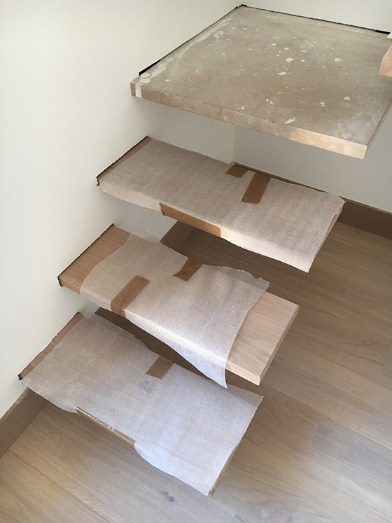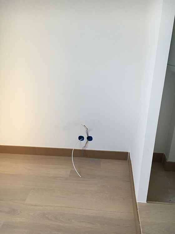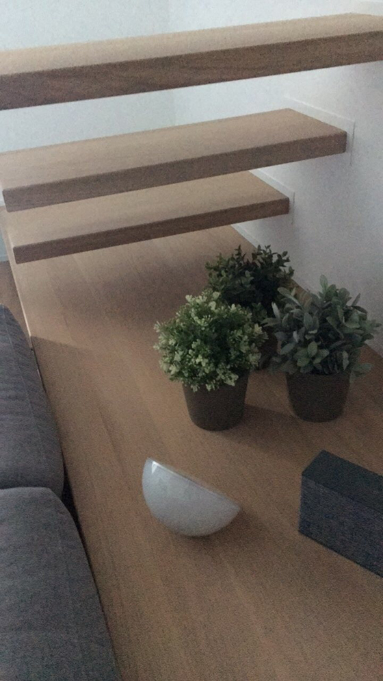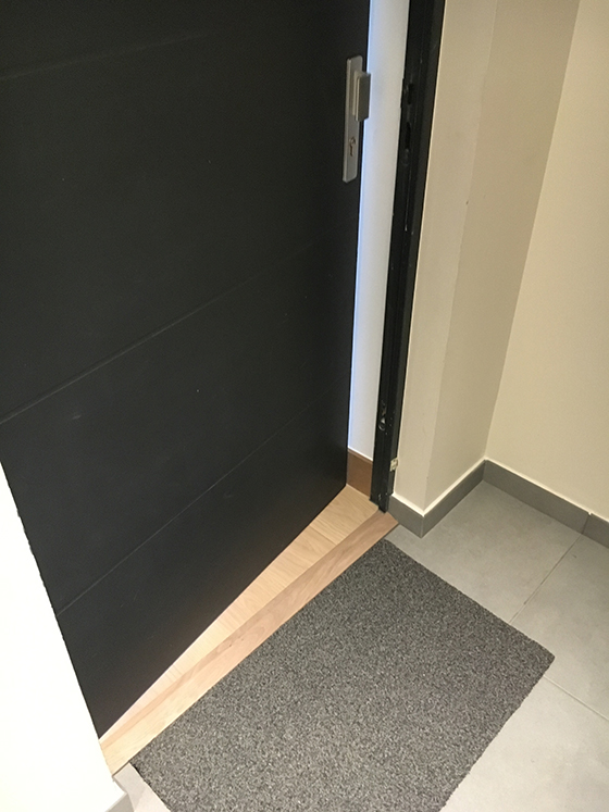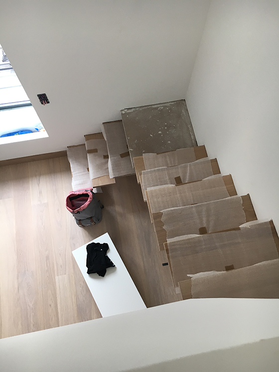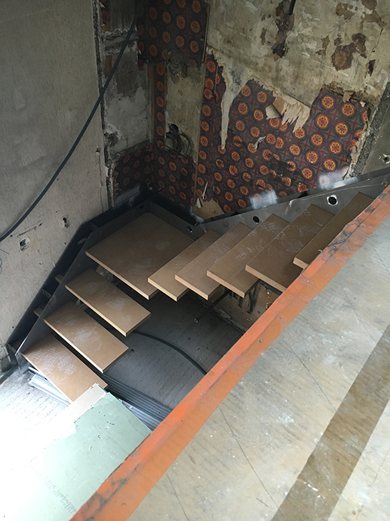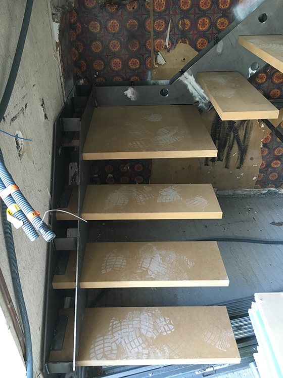 Marches d'escalier. Appareillage électrique. Porte coulissante sdb.