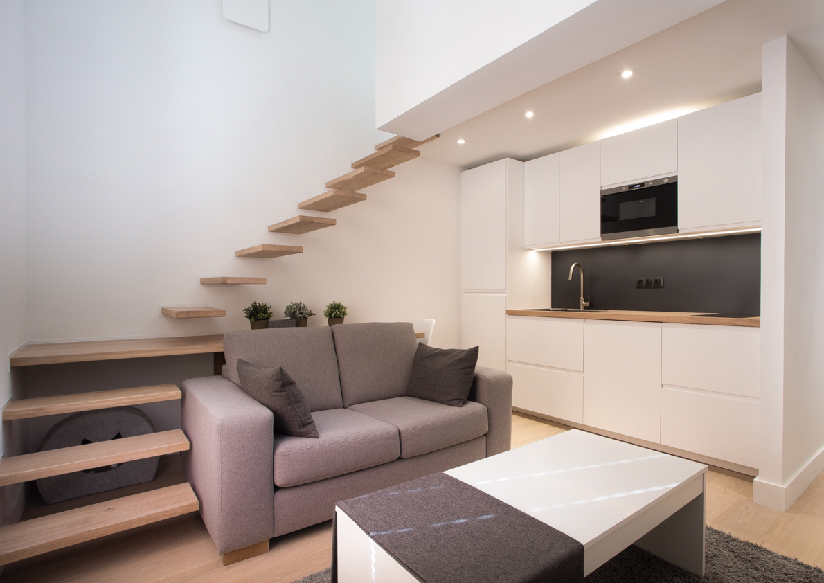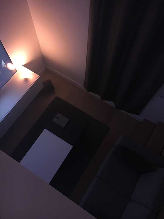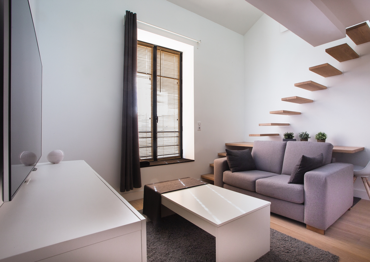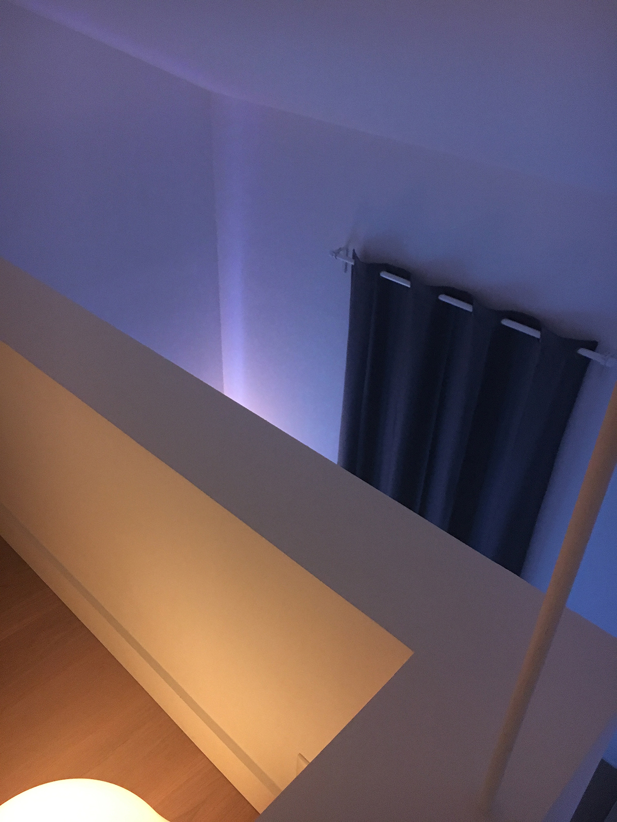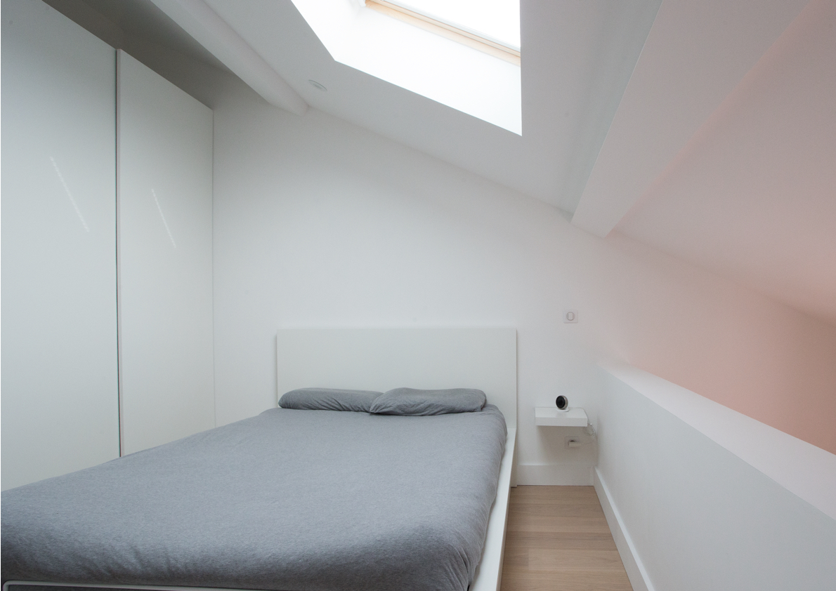 Marches d'escalier. Appareillage électrique. Porte coulissante sdb.