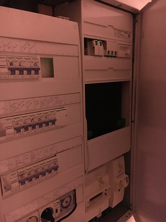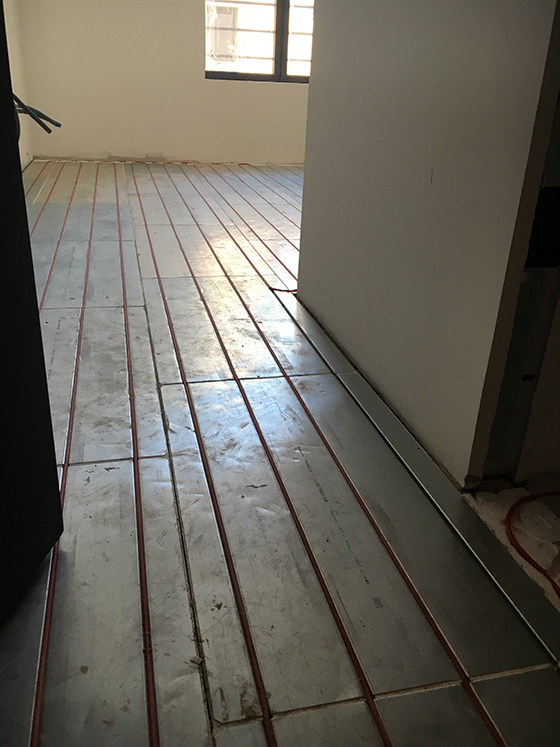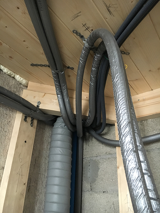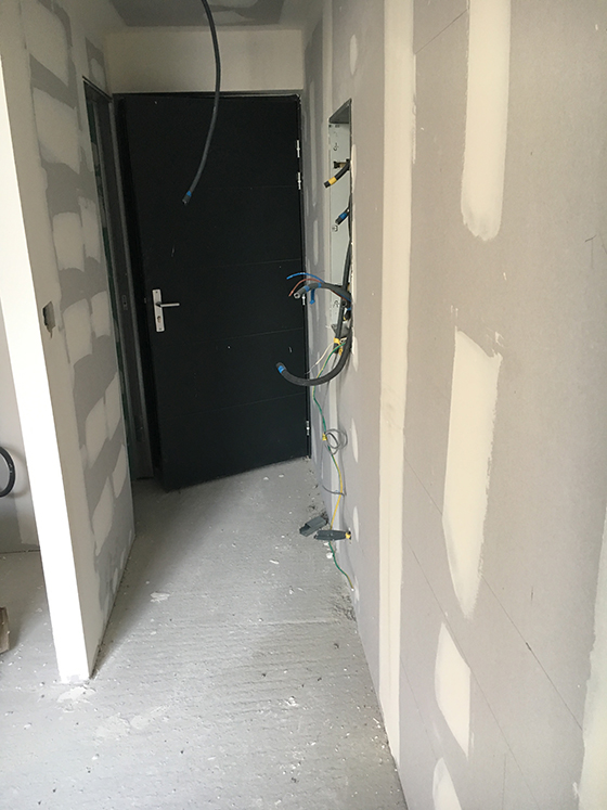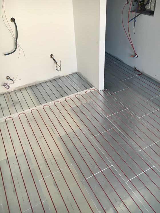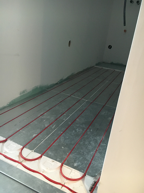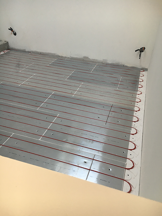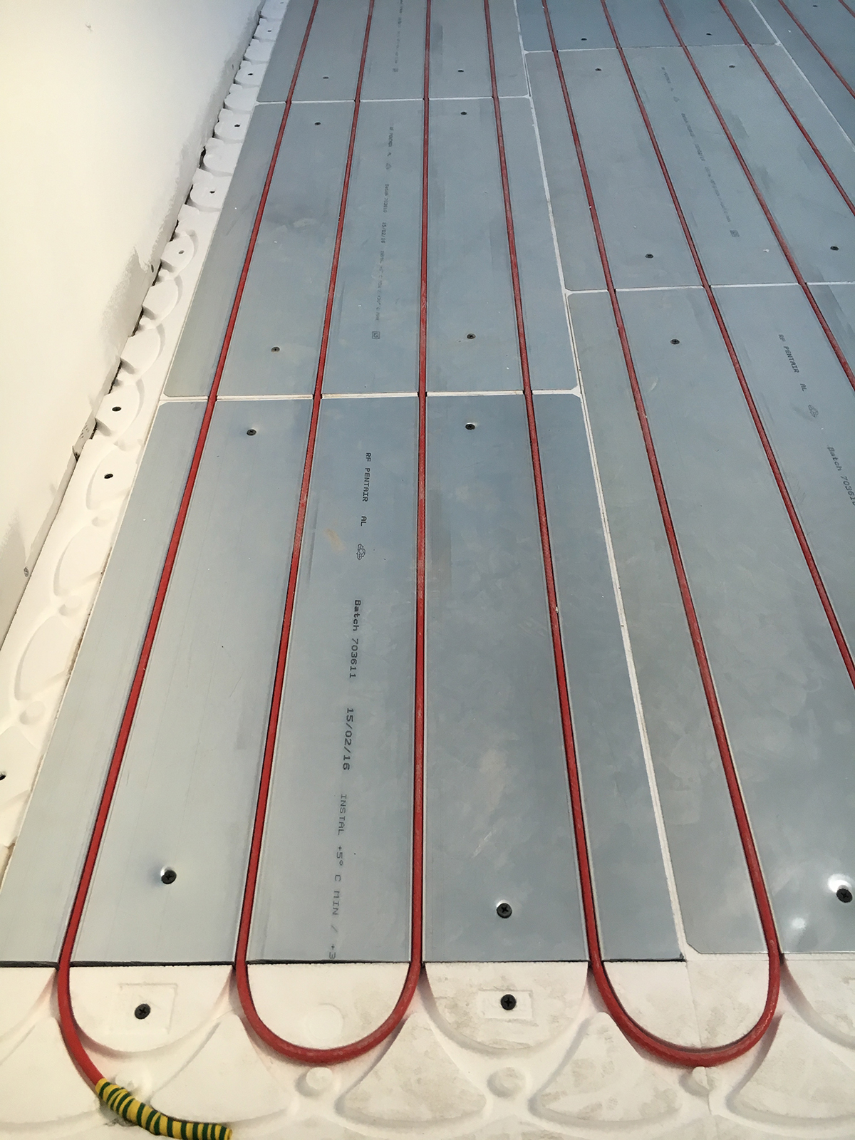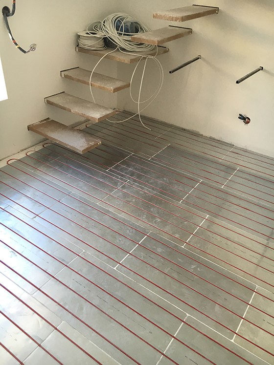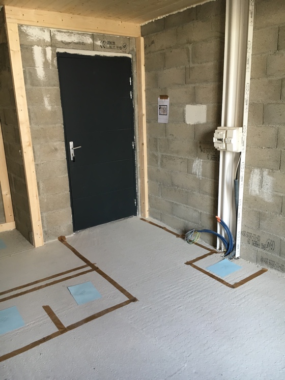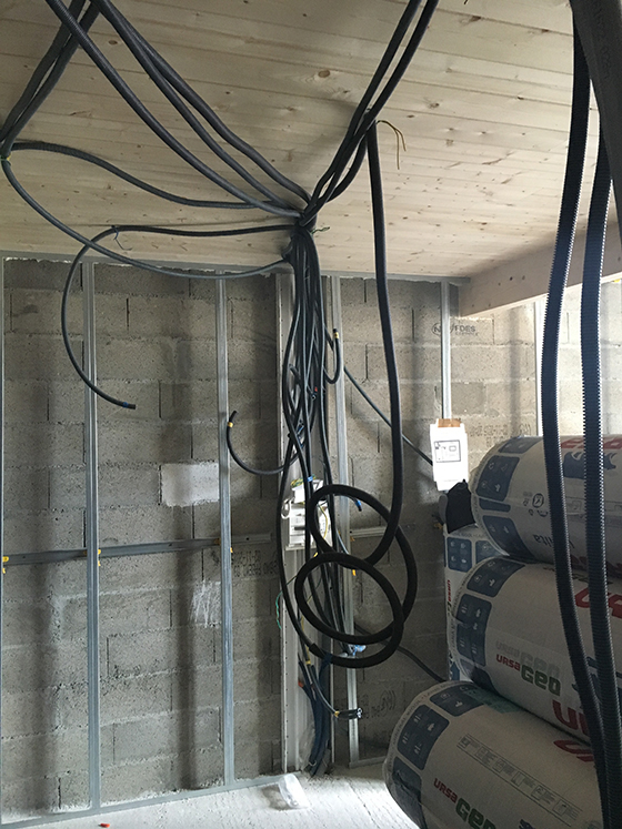 Finalisation du compteur électrique. Pose du chauffage au sol.