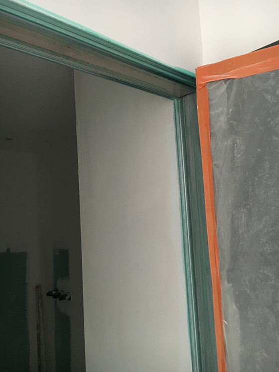 Peinture poursuite. Poursuite encadrement porte de SDB.