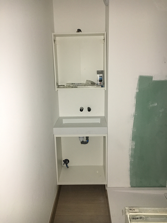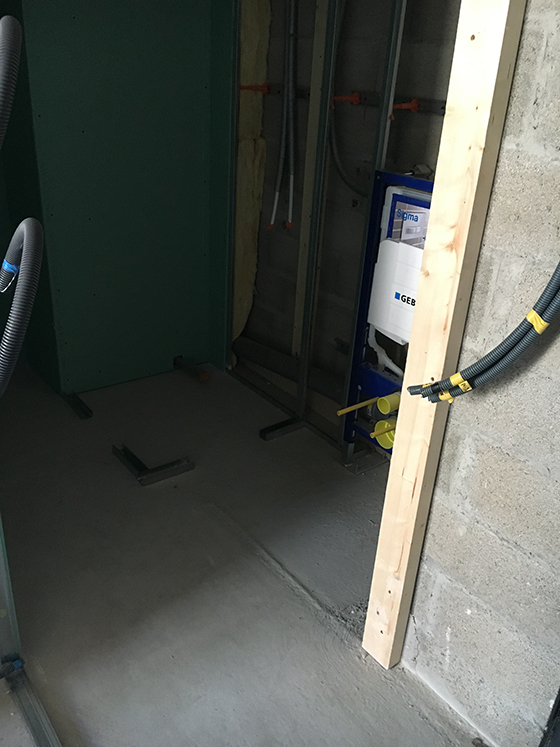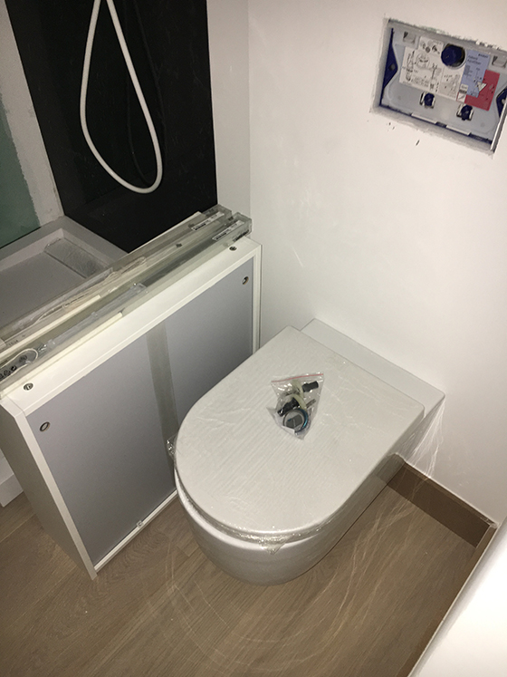 Cumulus, VMC, Electricité, Plinthe, Lavabo, Receveur, Douche, WC suspendu