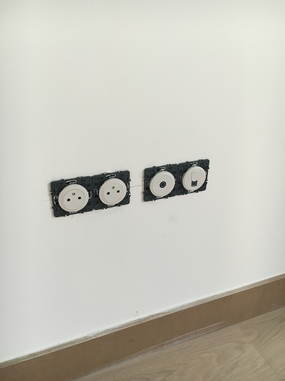 Ponçage + Première couche de peinture. Poursuite électricité (cuisine, compteur encastré, tirage des cables, derniers ajustements, ajout, suppression, déplacement de prises et spots).