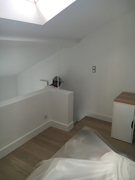 Ajustements peintures (De nouveaux ajustements devront être effectués en septembre après l'emménagement et la fin de travaux car il reste des irrégularités).