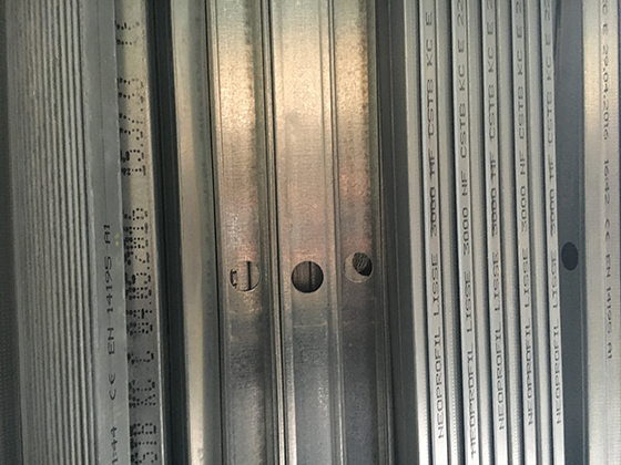 Poursuite avec la pose d’une partie du sol de la mezzanine. Mise en place de la poutre principale de maintien ainsi que d’un poteau temporaire pour supporter l’ensemble.